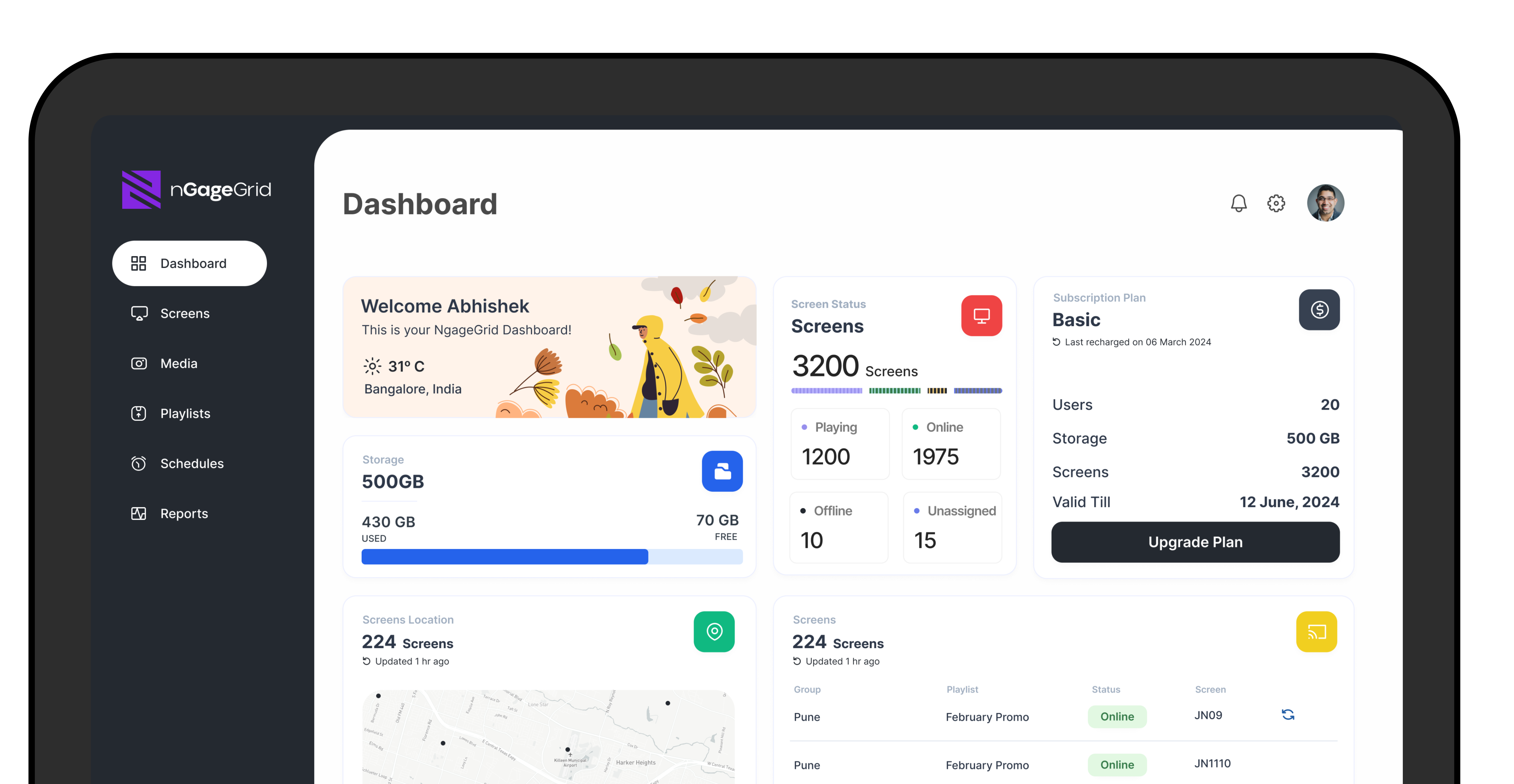 NgageGrid is an enterprise digital signage platform purpose-built for IFS Cloud environments. It displays real-time IFS and Power BI data on screens across manufacturing floors, warehouses, offices, and shared spaces.
