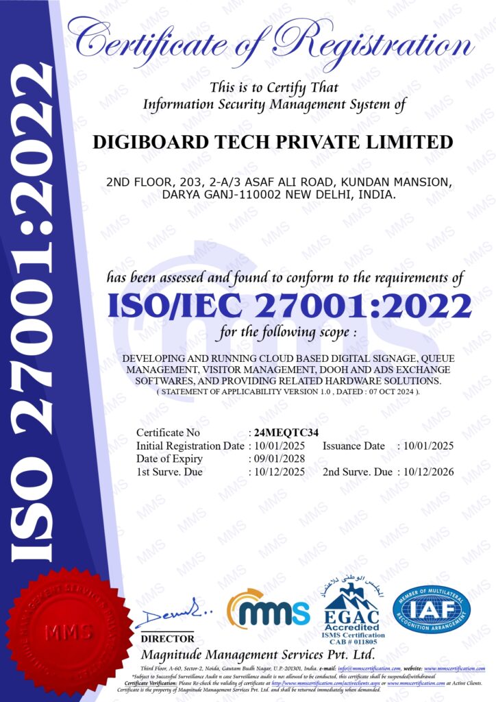 We Take the safety & confidentiality of your business seriously. Digisigns is one of the top ISO certified signage providers.