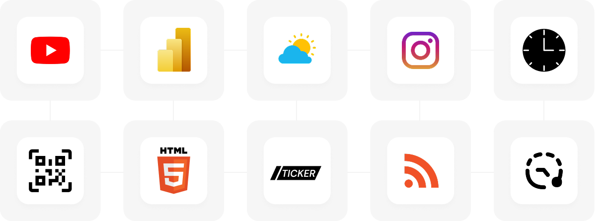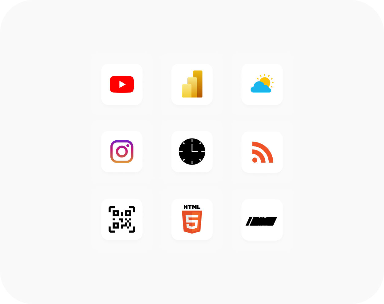 Bring Power BI insights to shared enterprise screens. KPIs and analytics stay visible where teams meet and decisions happen.