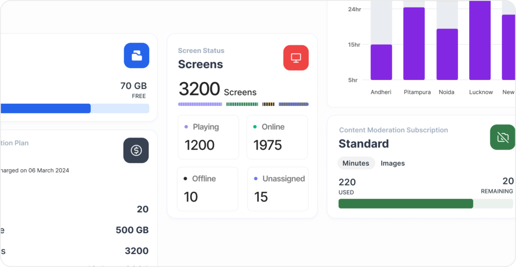 Create, schedule, and update content instantly from a central dashboard. Changes reflect on screens in seconds—no manual intervention required.